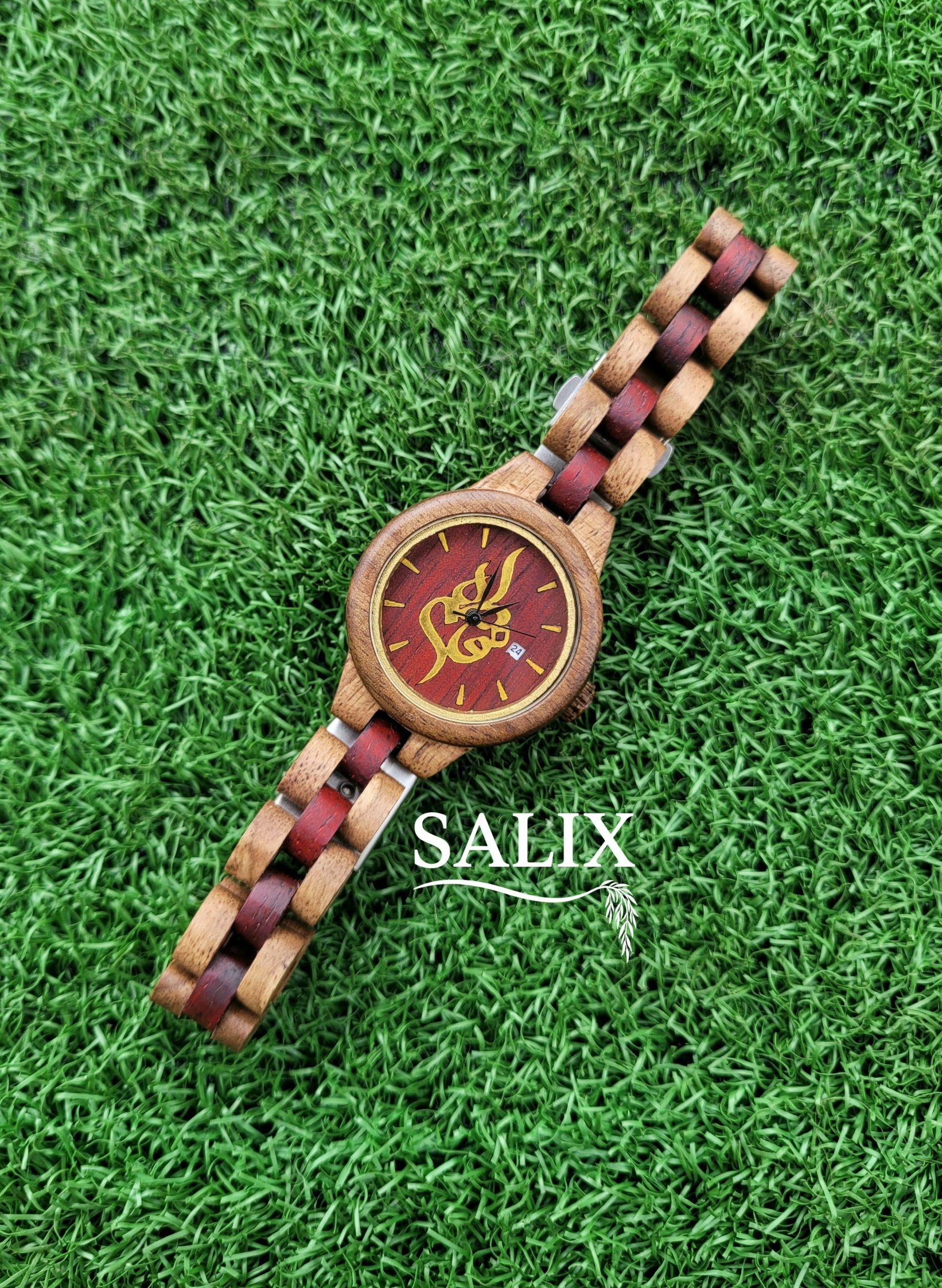 ساعت مچی چوبی با چوب گردو و گیلاس برزیلی (رزوود) با اسم فاطمه