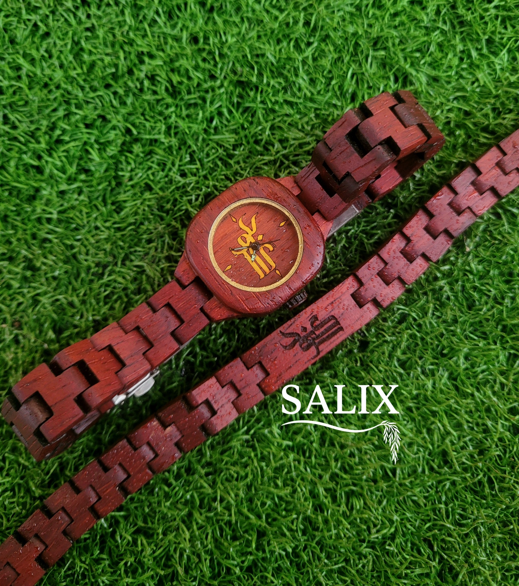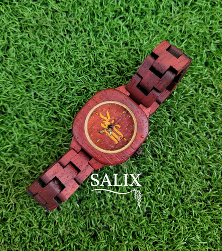 ساعت مچی چوبی با چوب گیلاس برزیلی (رزوود) صفحه طرح اسم سوگند